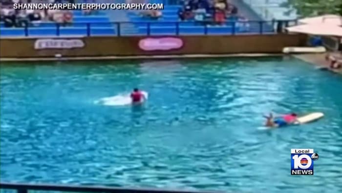 . A dolphin trainer was just attacked by Flipper. Photographer Shannon Carpenter was there with his family and captured the video. 2 days agoMIAMI Fla.